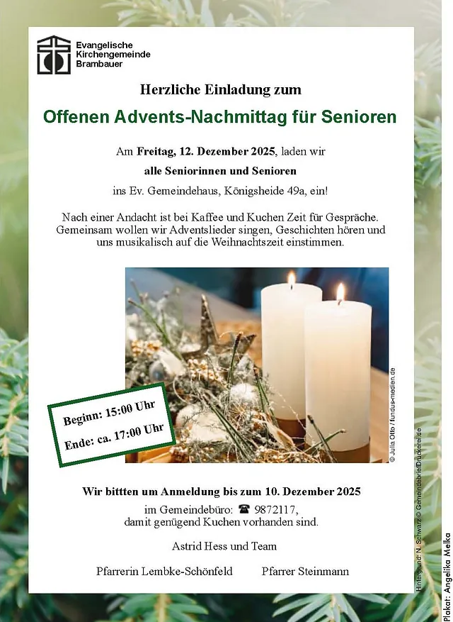 Wir bitten um vorherige Anmeldung bis zum 10.12.25,
